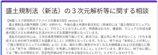 公的技術基準ではカバーされていない「世界標準の新技術や独自開発技術」を用いた技術支援サービスを行います。また、盛土規制法で必須となった盛土の3次元安定解析に関する技術サービスも行っています。